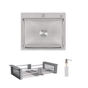 Комплект Lidz Handmade H6050 (Brushed) включає простору мийку зі шліфованою поверхнею Brushed, доповнену вбудованим дозатором і універсальним кошиком Lidz K01G. Надійне і практичне рішення для будь-якої кухні.