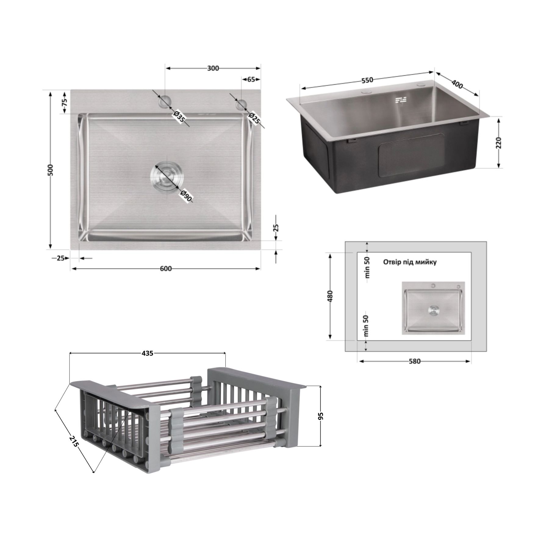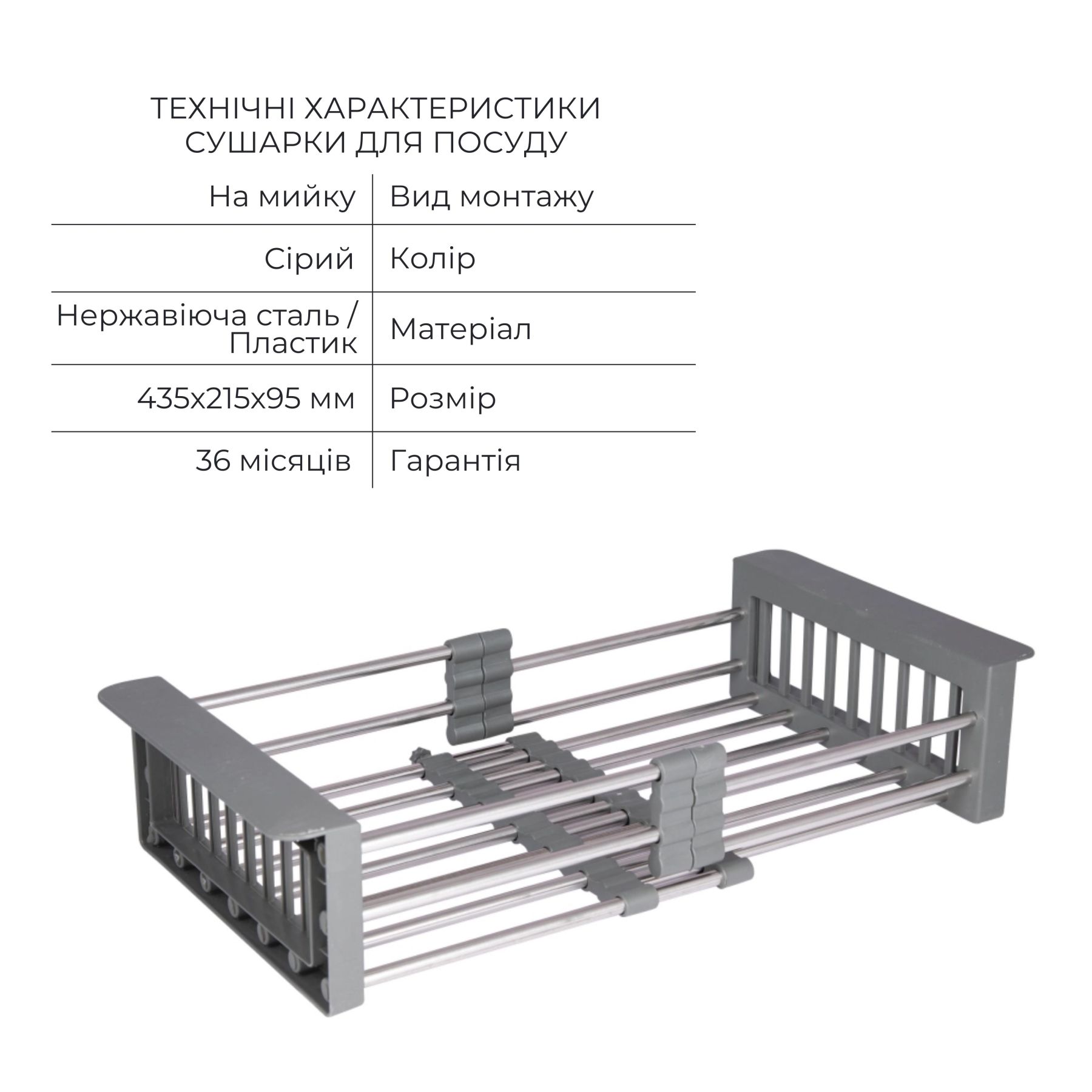 Колір:Сталь - мийка; сірий - кошик
