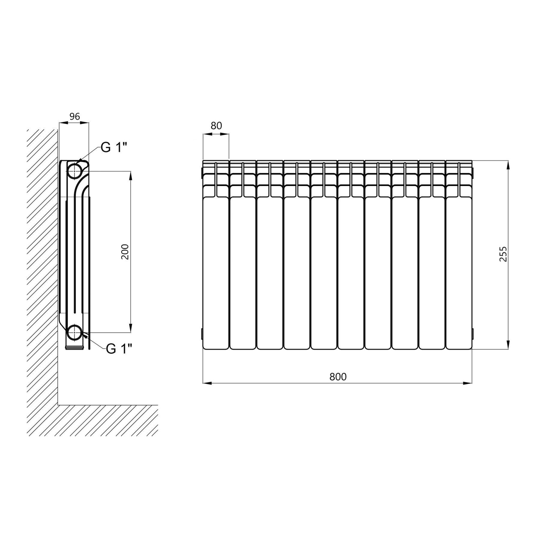 Габаритні розміри секції (ШхГхВ), мм:80х96х255