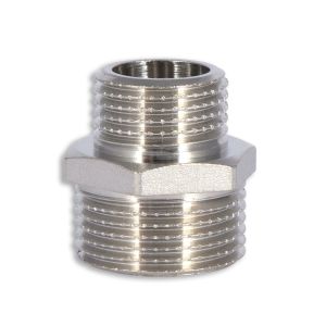 Редукційний ніпель Thermo Alliance Forte підключення 1/2"х3/4" ЗЗ виготовлений з нікельованої латуні, призначений для з’єднання труб різного діаметра.