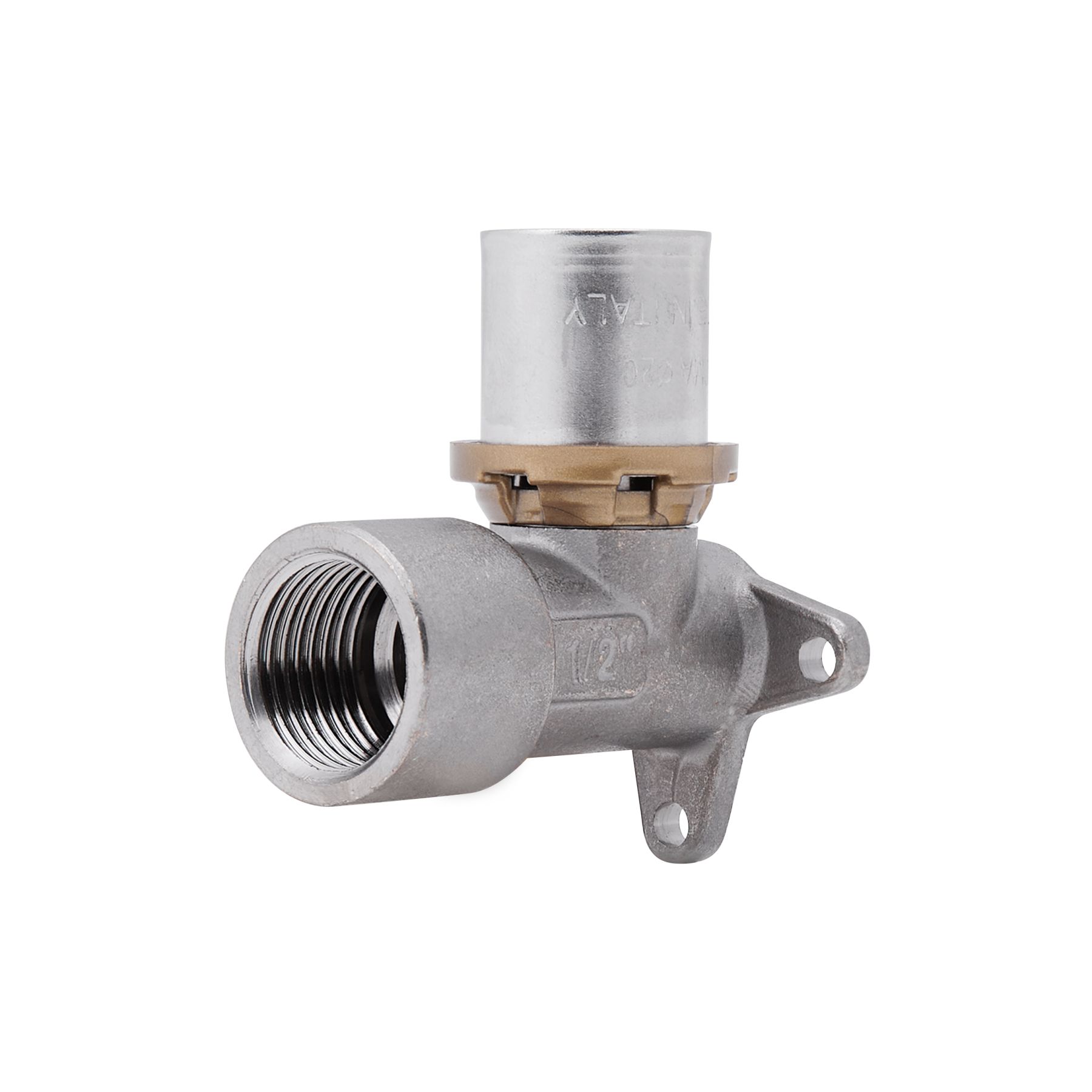 Прес-фітинг кут 1/2"х20 ICMA Sempiter для металопластикової труби спроектовані для застосування в системах водопостачання, опалення, і охолодження. Прес-фітинги Sempiter були створені для монтажу з радіальним пресуванням. Даний тип з'єднання має легкість і швидкість монтажу, в сукупності з чудовою герметичністю в умовах високого тиску і температури. Окремий прес на кожен діаметр металопластикової труби стискає гільзу з нержавіючої сталі, яка надійно фіксує трубу на фітингу.