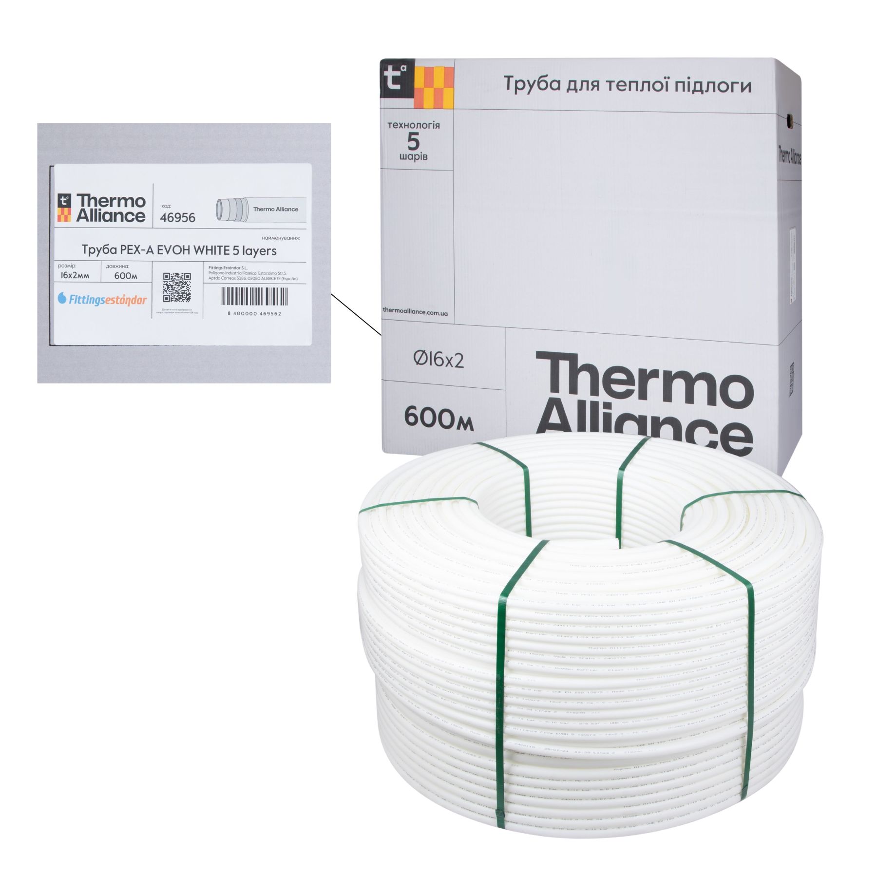 Труба Thermo Alliance PEX-A EVOH White 5 шарів 16х2 мм (600 м) Spain