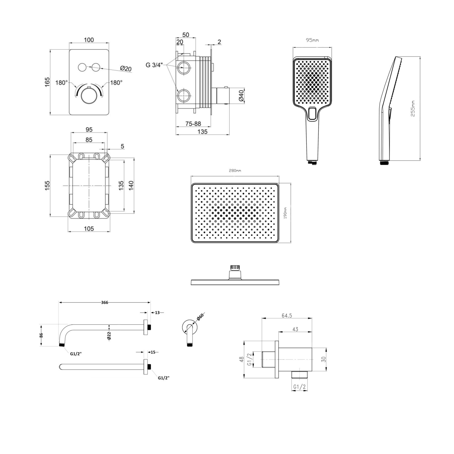 Комплектація:Змішувач (QTVOT6442T105NKB), лійка для верхнього душу (QTHLA107BLM45945), лійка для ручного душу (QTRUC125BLM45959), кронтштейн (QTTRU120BLM45929), підключення (QT809810842857NB), шланг (QTHADPVCSQ160B)