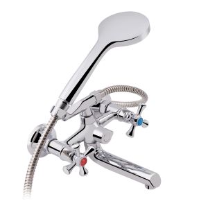 Змішувач для ванни Lidz (CRM) 75 21 142 с коротким поворотним виливом виконаний з інтегрованим шланговим з'єднанням, укомплектований душовим шлангом і лійкою. Для включення потоку води передбачено два вентиля з нанесеними маркуванням Х + Г води. Для перемикання на душ - поворотний дивертор. Настінний монтаж здійснюється за допомогою кріпильних деталей, що входять в комплект. Круглі розетки приховають сліди установки на обробці.