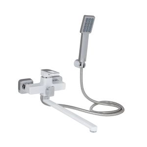 Змішувач для ванни Lidz Wawel 005 LDWAW005WHI45399 з довгим поворотним виливом виготовлений із цинку, укомплектований кронштейном для ручного душу, душовим шлангом та лійкою. Завдяки якісному покриттю має міцну поверхню та привабливий зовнішній вигляд. Декоративні розетки приховують похибки установки на оздобленні кімнати. Напір води та її температура регулюються поворотом важеля в потрібне положення. Перемикання ванни/души здійснюється за допомогою дивертора.