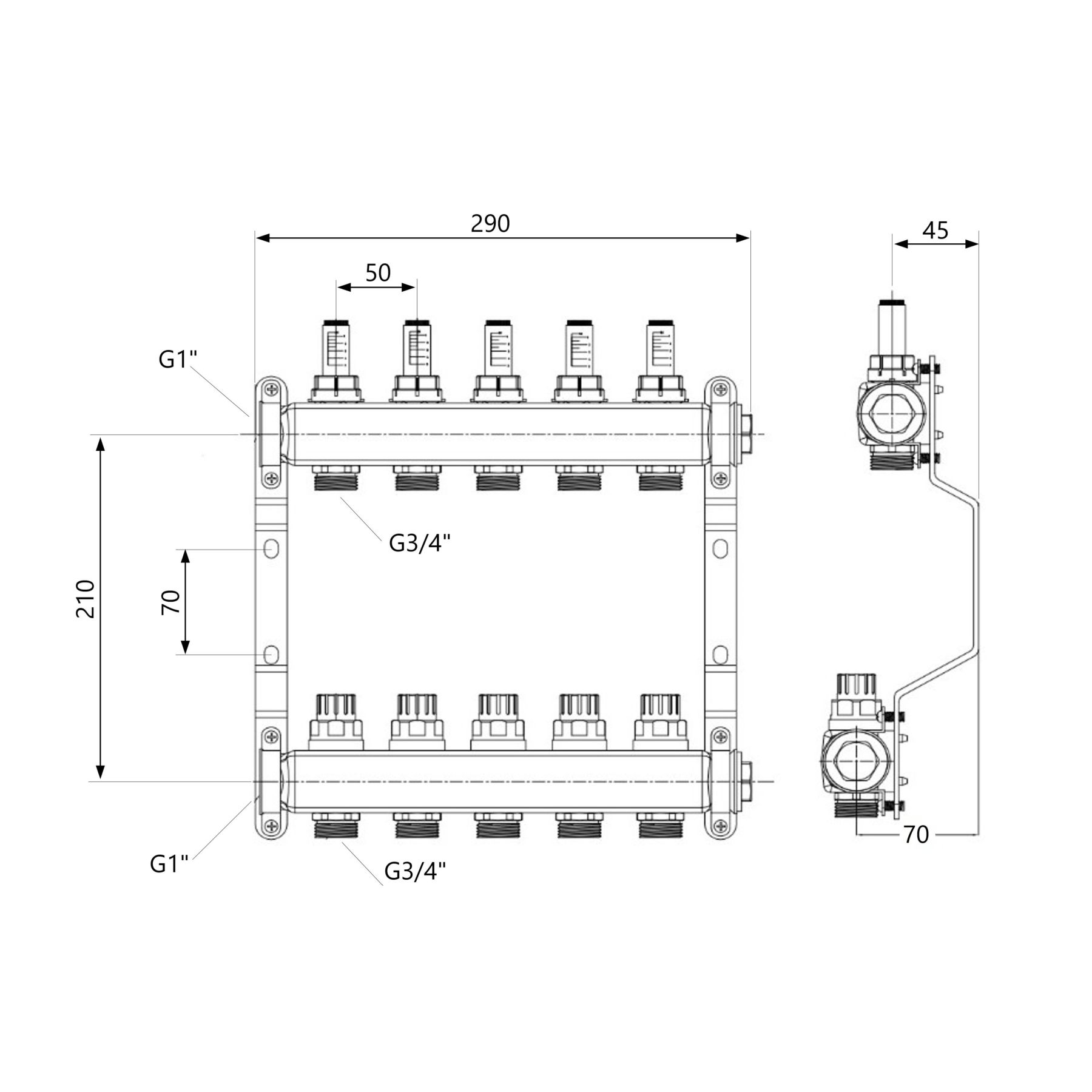 Колектор з витратомірами Thermo Alliance Standart 1" 5 виходи SD0045