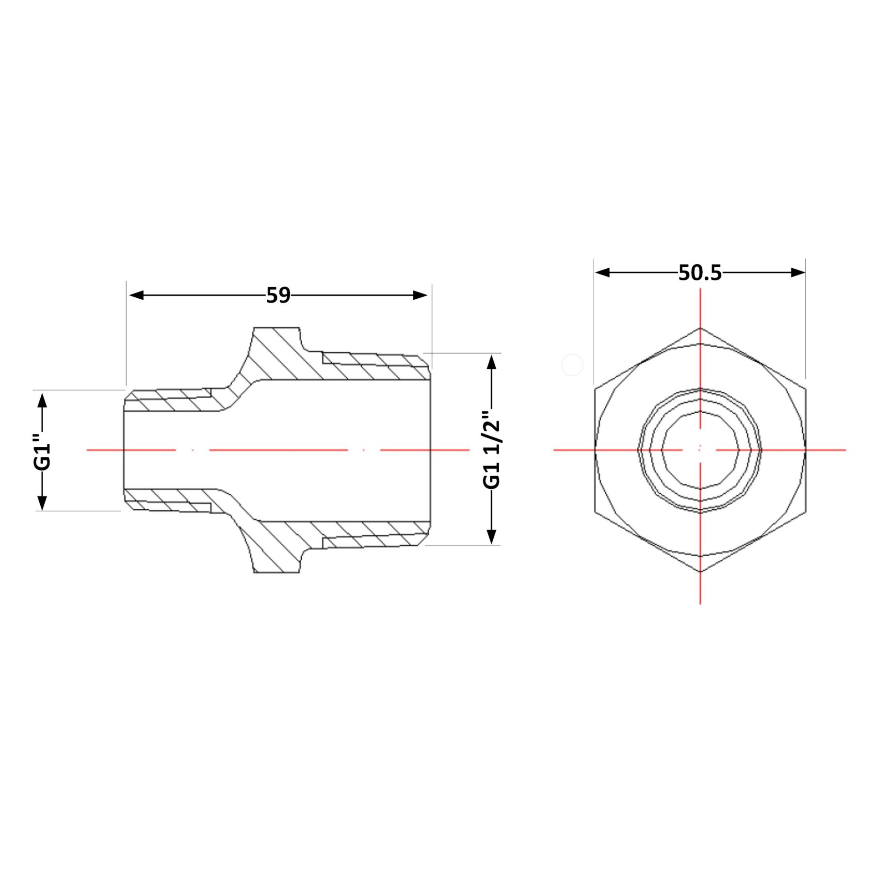 Розмір підключення:1 1/2"x1"