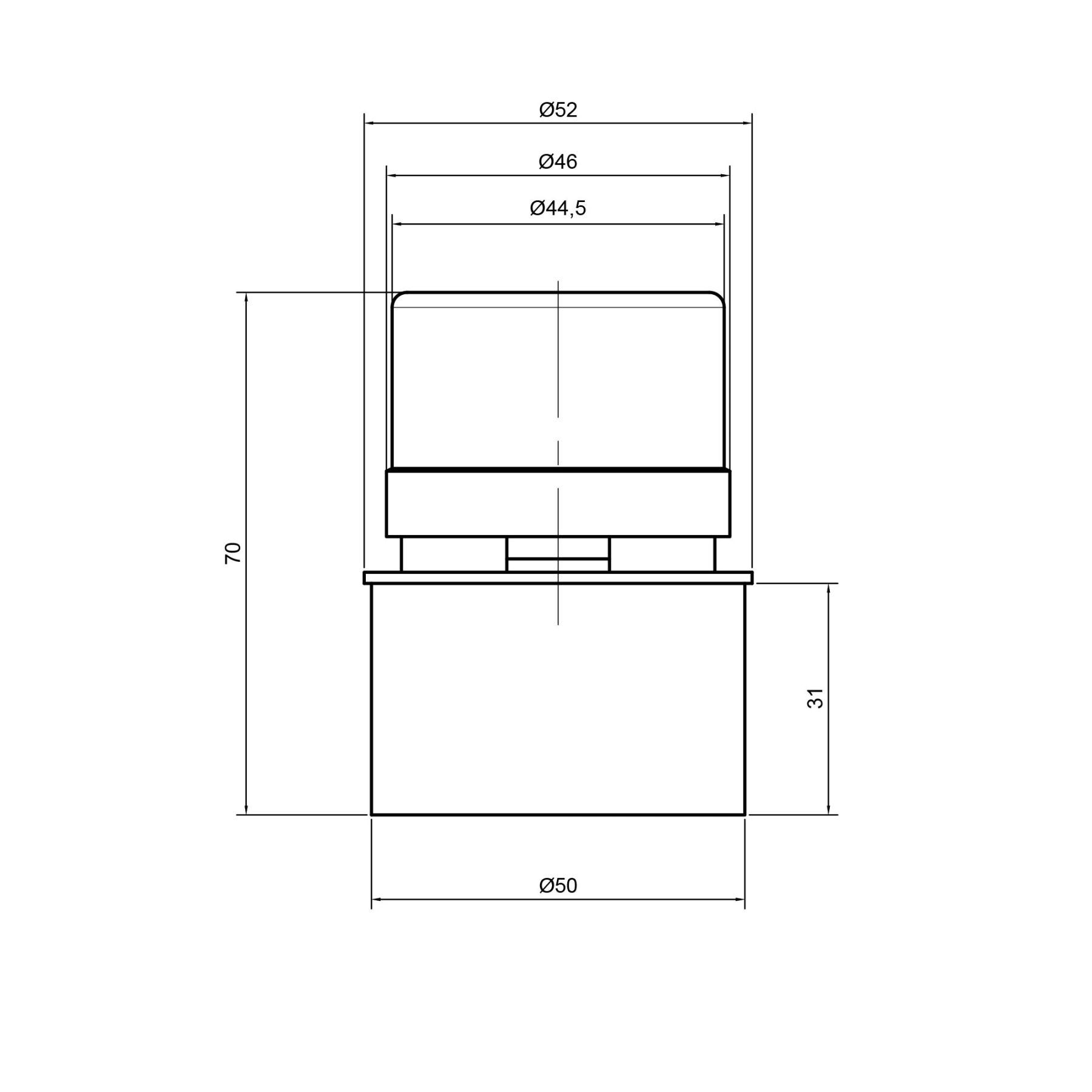 Габаритні розміри виробу (ШхГхВ), мм:52х52х70