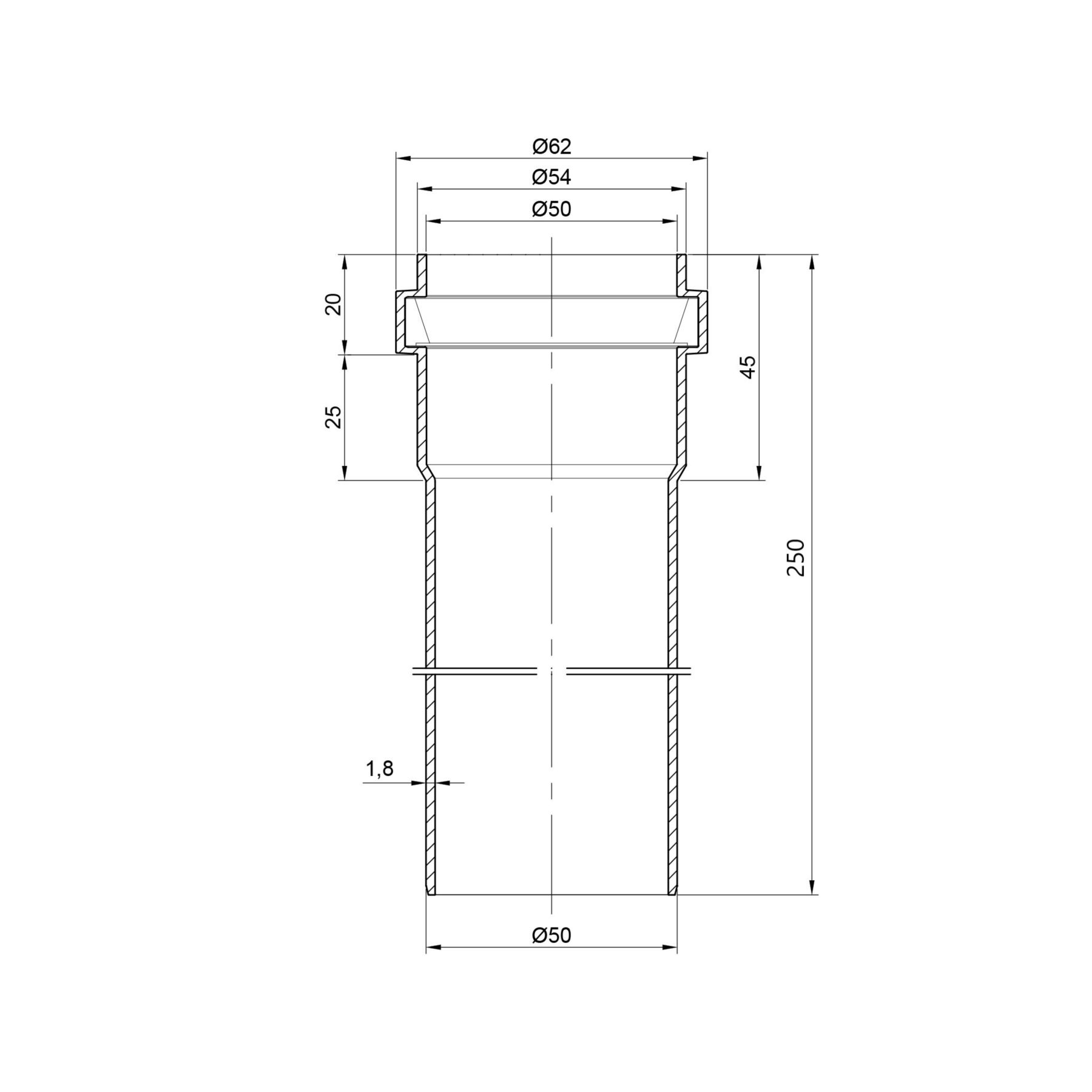 Довжина труби, мм:250
