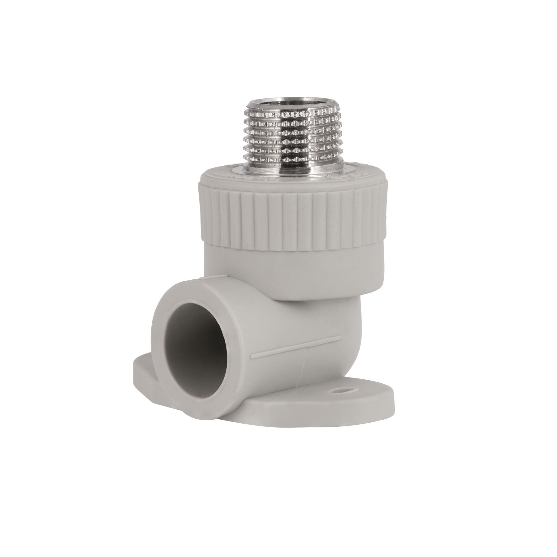 Кутник PPR Blue Ocean настінний з кріпленням 20х1/2", 90° НР виконаний з високоякісного поліпропілену. Завдяки матеріалу виготовлення виріб стійкий до постійної робочої температури до 90 ° С. Кутник кріпиться за допомогою шурупів до будь-якої поверхні без особливих зусиль. з двома отворами. Діаметр підключення фітинга до поліпропіленової або армованої труби становить 20 мм, діаметр зовнішньої різьби - 1/2".