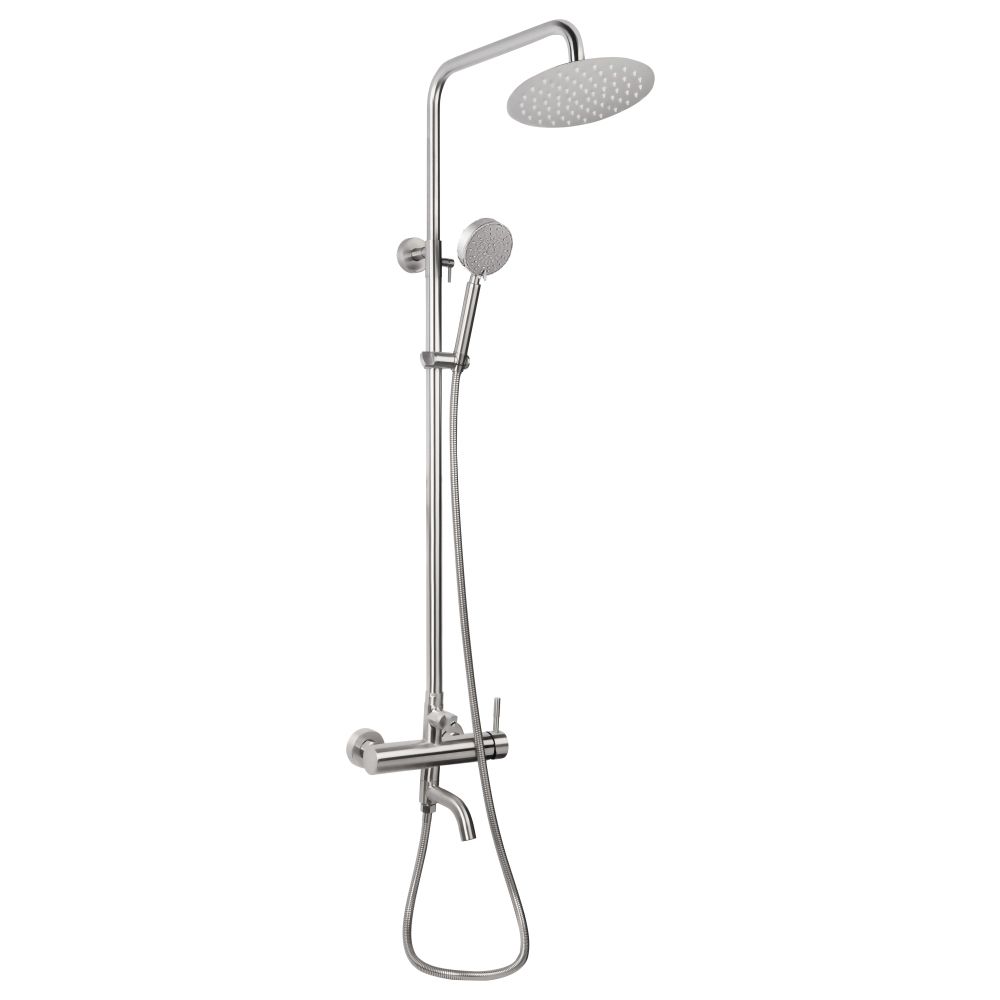 Душова система Lidz (NKS) 12 32 1004 - незамінний атрибут для приємної і звичної кожній сучасній людині гігієнічної процедури. До складу входять змішувач, верхній та ручний душ, а також зручна, регульована за висотою душова стійка. Деталі виконані з високоякісної нержавіючої сталі, що збільшує експлуатаційний термін служби даної душова системи.