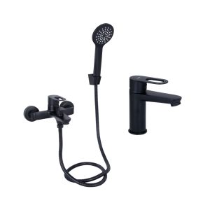 Комплект змішувачів Lidz Latwa Black: Змішувач для раковини LDLAT001BLA45418 + Змішувач для ванни LDLAT006BLA45419