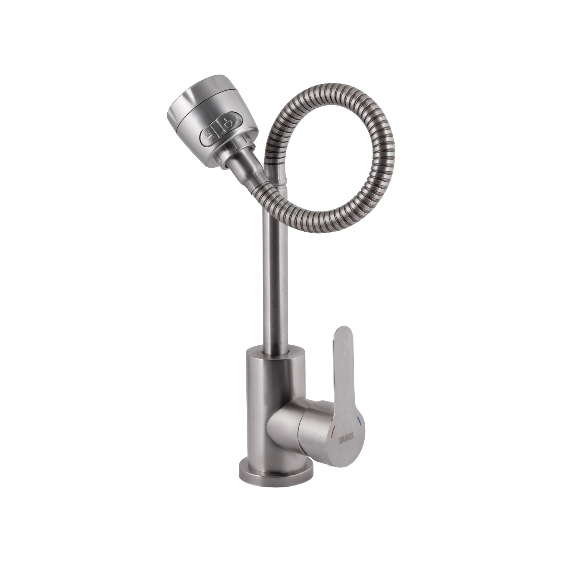 Змішувач для кухні Brinex Pure 015F41 із гнучким виливом Nickel – універсальне рішення для кухні. Гнучкий вилив дозволяє легко направити потік води в потрібне місце. Нікельове покриття стійке до пошкоджень та корозії. Надійний керамічний картридж забезпечує плавну роботу.