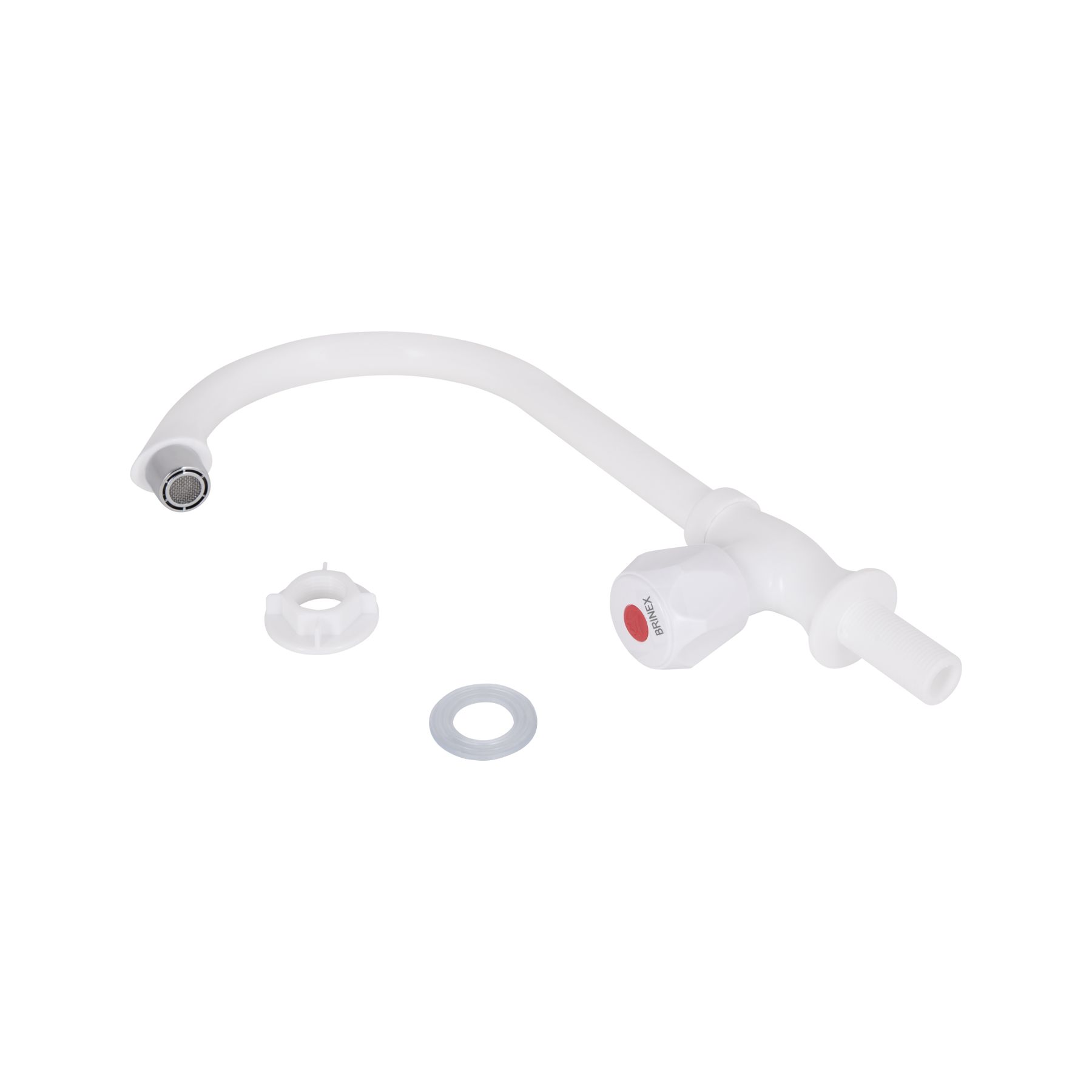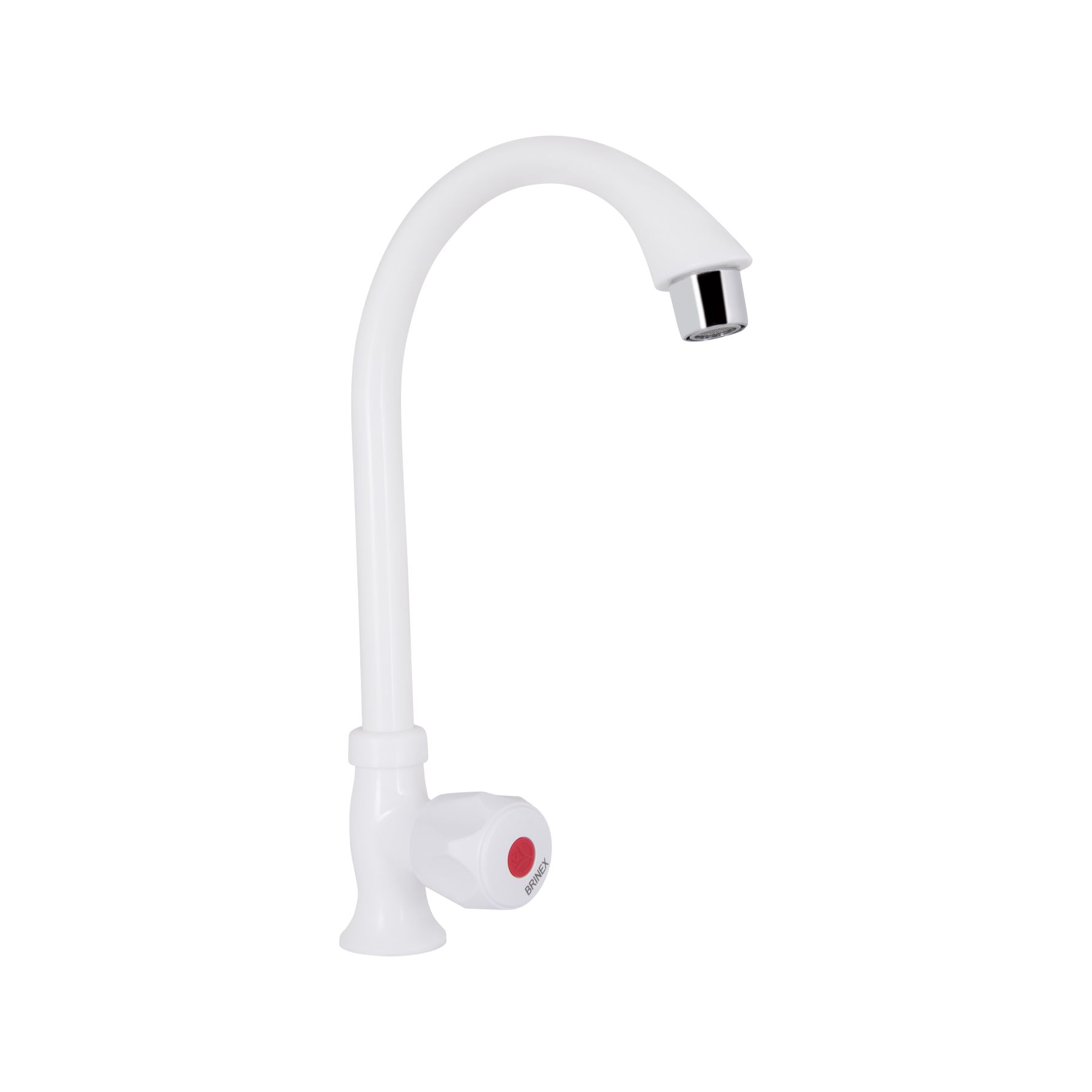 Кран на одну воду для кухні Brinex BW 269 виготовлений з ABS пластику. Завдяки глянсовій поверхні білого кольору має оригінальний зовнішній вигляд. Виконаний в класичному стилі, з вентильною ручкою для регулювання натиску холодної води.