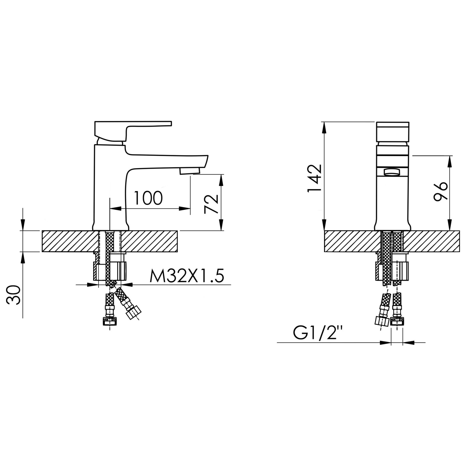 Комплектація:Змішувач, гнучка підводка, кріплення.