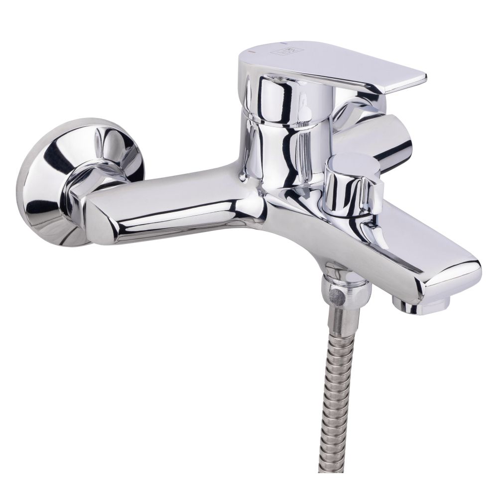 Змішувач для ванни Lidz (CRM) 19 46 006-1 New виконано в хромованому кольорі з глянцевою поверхнею з коротким фіксованим виливом. Разом з тримачем для душу він монтується на стіну над ванною або в душі. Декоративні розетки приховають всі похибки встановлення. Напір води і її температура регулюються поворотом важеля в необхідне положення. Перемикання ванна/душ виконується за допомогою дивертора.